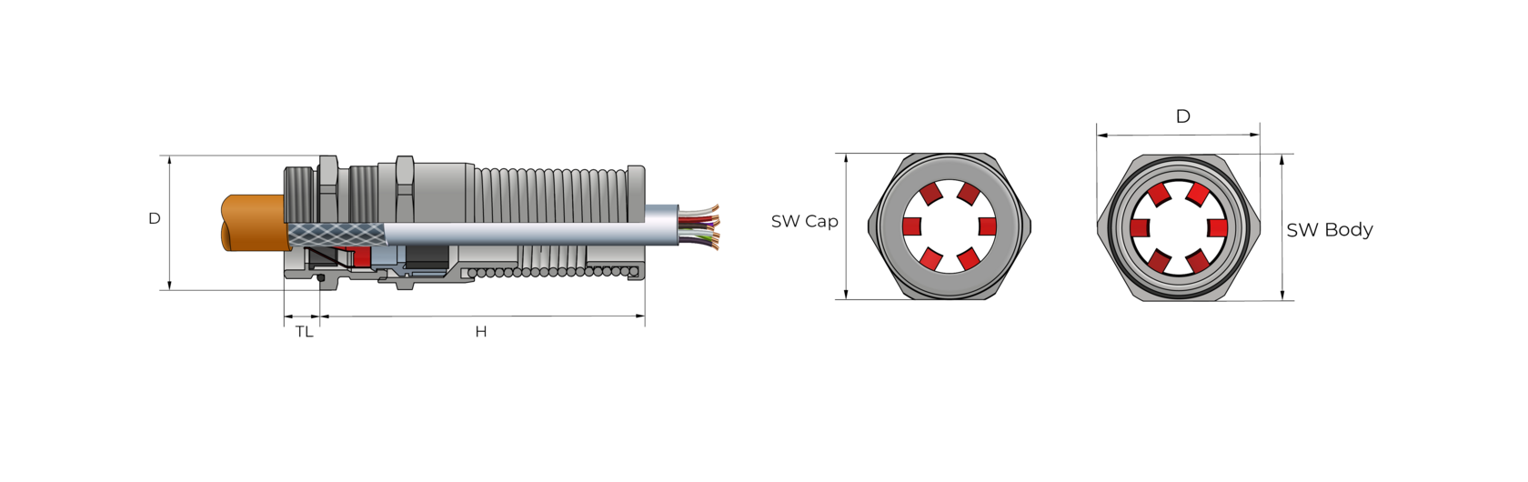 Кабельные вводы ЕМС с заземлением экрана с защитой от перегиба